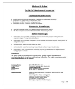 Presentation and analytical problem solving, technical skills and ability would be utilized and I shall have an opportunity to improve on it. Qualification Diploma of Associate Engineer in Mechanical Technology from Swedish Pakistani Institute of Technology, Gujrat Gujrat, Punjab, Pakistan. 2 OF ... Access Doc